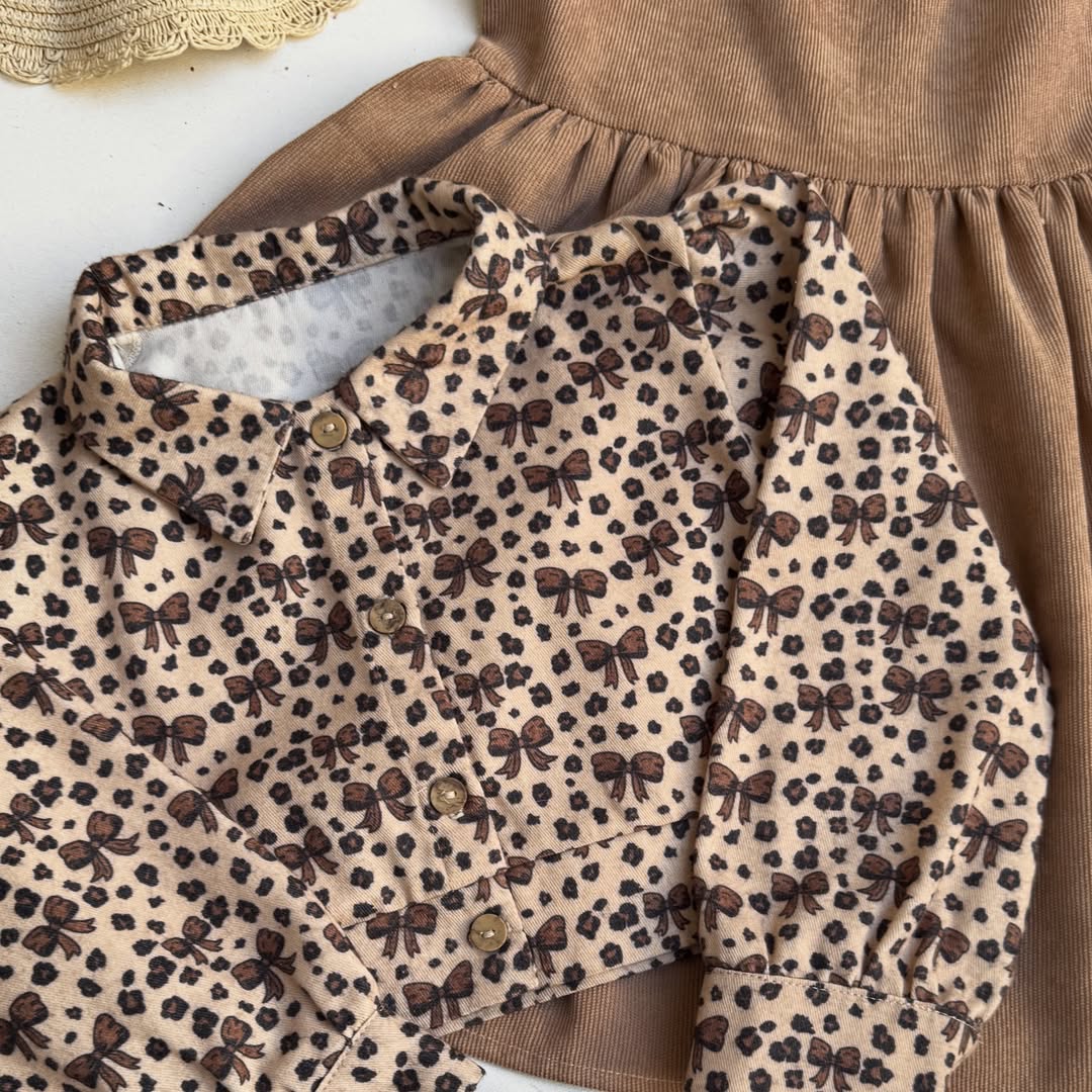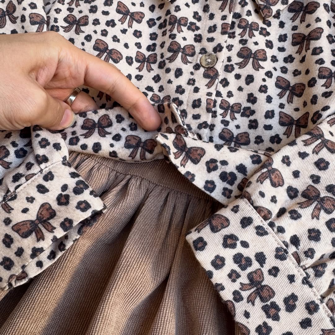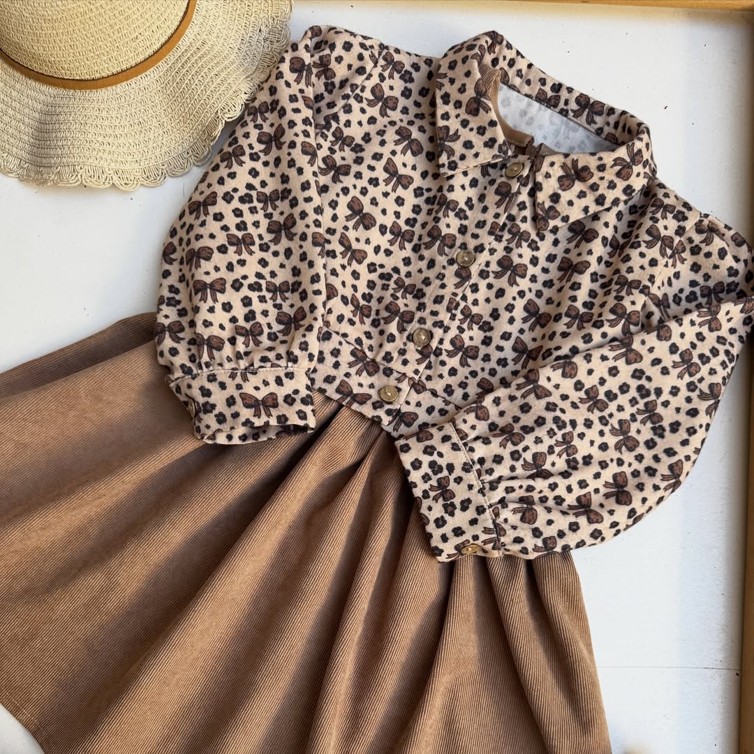 ترکیب پاپیون و پلنگی با سارافون جذاب. جنس کت کتان و جنس سارافون مخمل کبریتی هست. حتما جدول سایز را چک کنید.