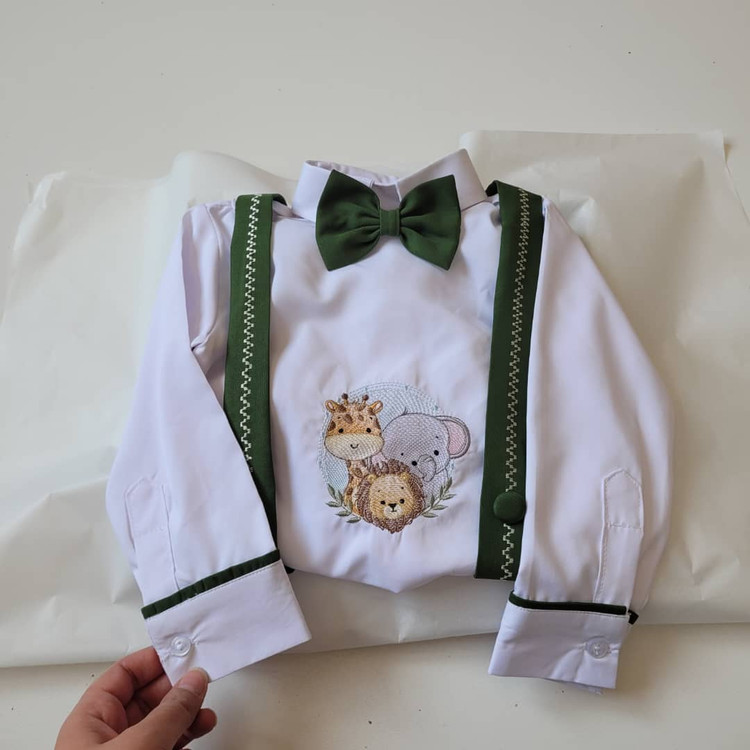 پیراهن شلوارک پسرانه گلدوزی شده.